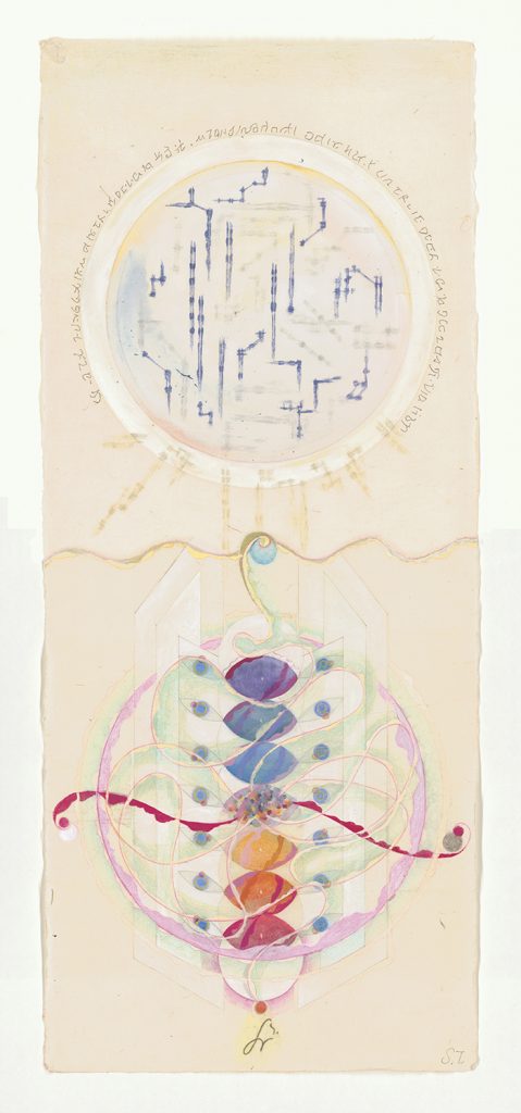 Mandala from the future, embroidery and color pencils on vintage linen, 2025