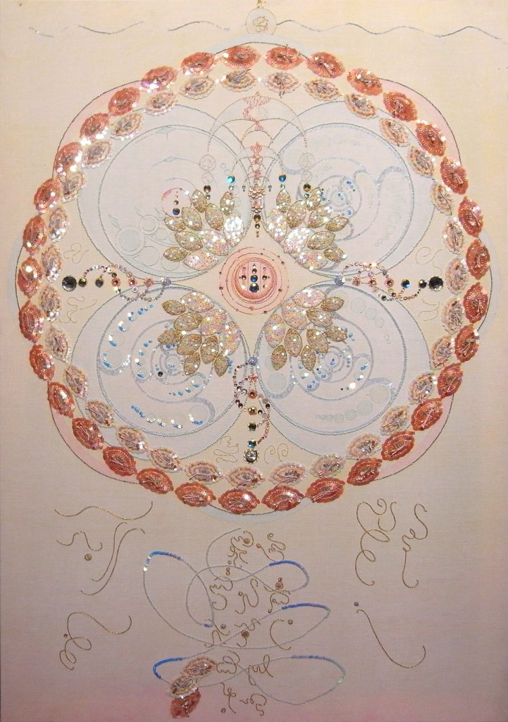 I started this long-term body of works in 2016, after opening up to the invisible realm. I got naively caught in wonderment but permanent shadow work is even more necessary. Psychic realm vs true spirituality. the Wounds, the Rise, the Merge, Blossoms, for now I keep embroidering.~2025