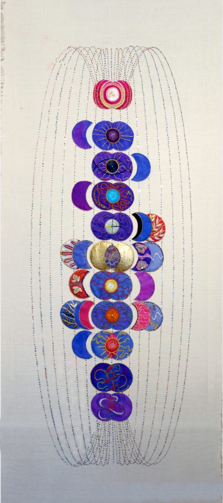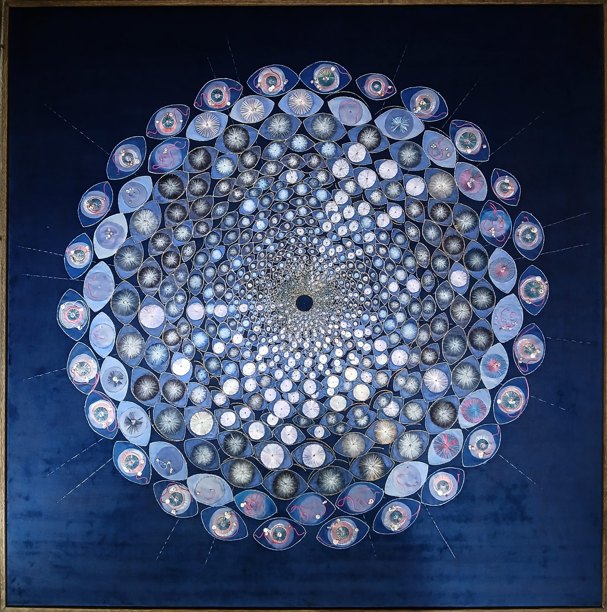 I started this long-term body of works in 2016, after opening up to the invisible realm. I got naively caught in wonderment but permanent shadow work is even more necessary. Could it become a recount (the Wounds, the Rise, the Merge, Blossoms) of an inner transformational process, for now I keep embroidering.~2025