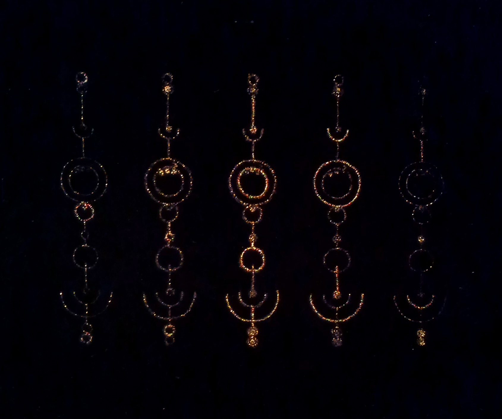 Méditant II, et III, natural dyed linen, lace and monkfruit sugar beads, 2024, 44x80cm