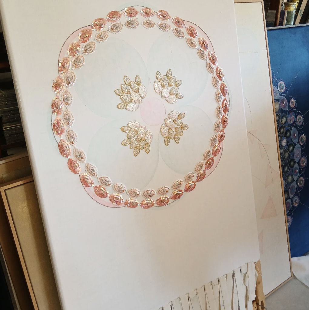 A mandala in progress, playing with crop circles. In his book A Modern Myth (1958), Jung discusses lenticular UFOs as mandala motifs, or a call from the unconscious for unity and individuation.
