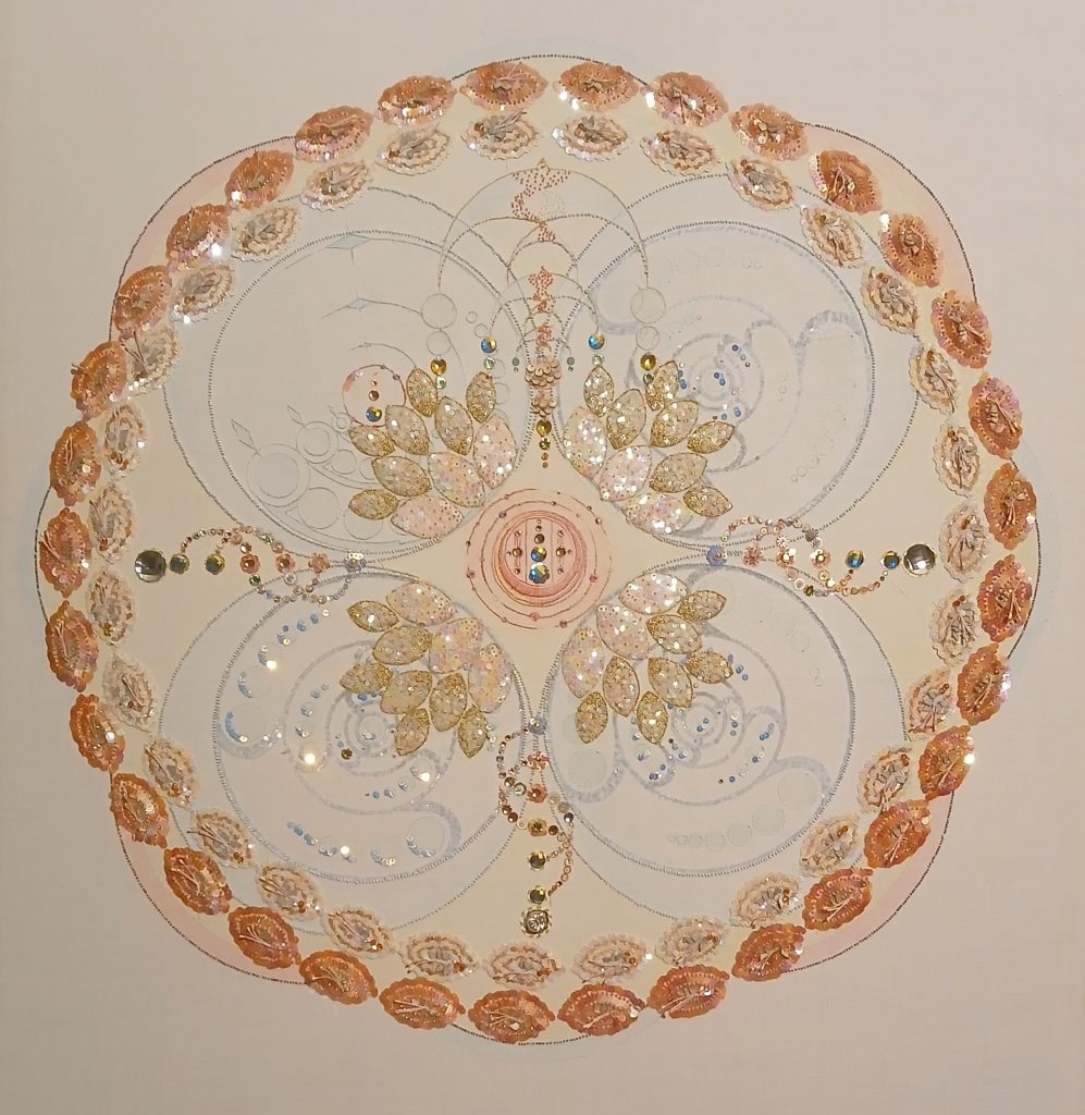 A mandala in progress, playing with crop circles, as they question the otherness, whatever they may be. In his book A Modern Myth (1958), Jung discusses lenticular UFOs as mandala motifs, or a call from the unconscious for unity and individuation.